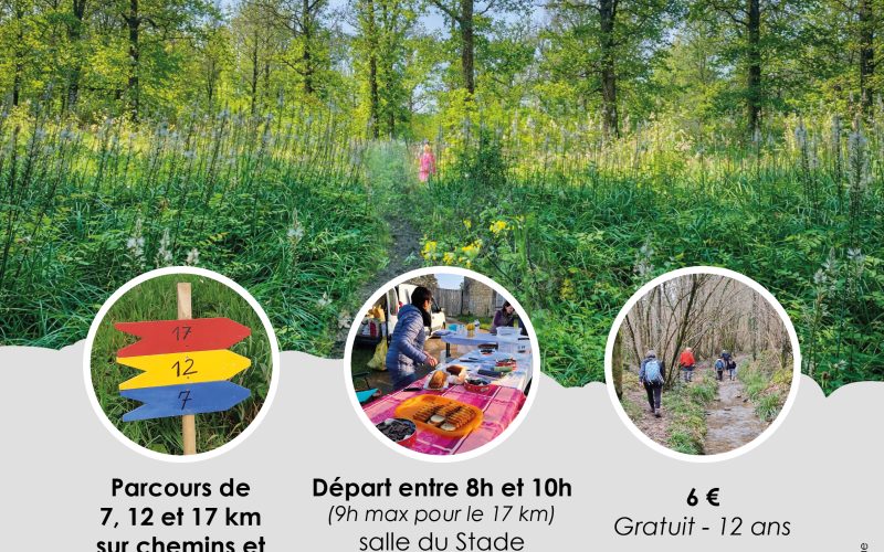 Inscription sur place, départ libre de 8 à 10h pour les 7 et 12 km, 9h au plus tard pour le 17 km.